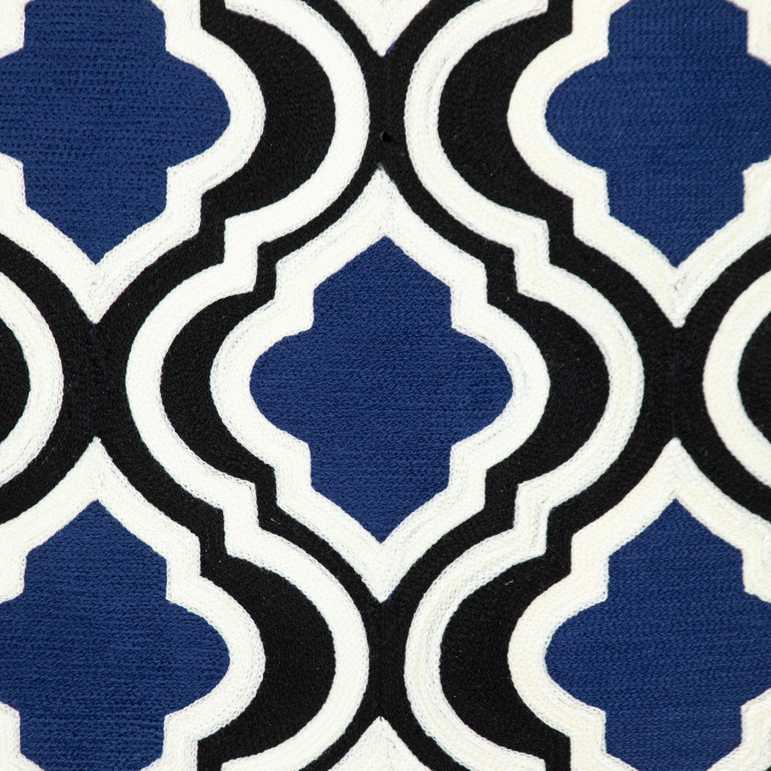 Unique and decorative, this comfortable 20-inch blue and white geometric cotton throw pillow will leave a lasting impression. This blue and white hued piece represents quality construction, expertly made from durable cotton that is not only long lasting but soft to the touch as well. This soft polyfill filled pillow not only is decorative but made to be comfy and cozy all day long. For anyone that loves to decorate or accent their space with color and texture. A great decorative accessory for your favorite chair, to accent your sofa, or to use as part of your bed ensemble. 20-inch H x 20-inch W x 0.5-inch D