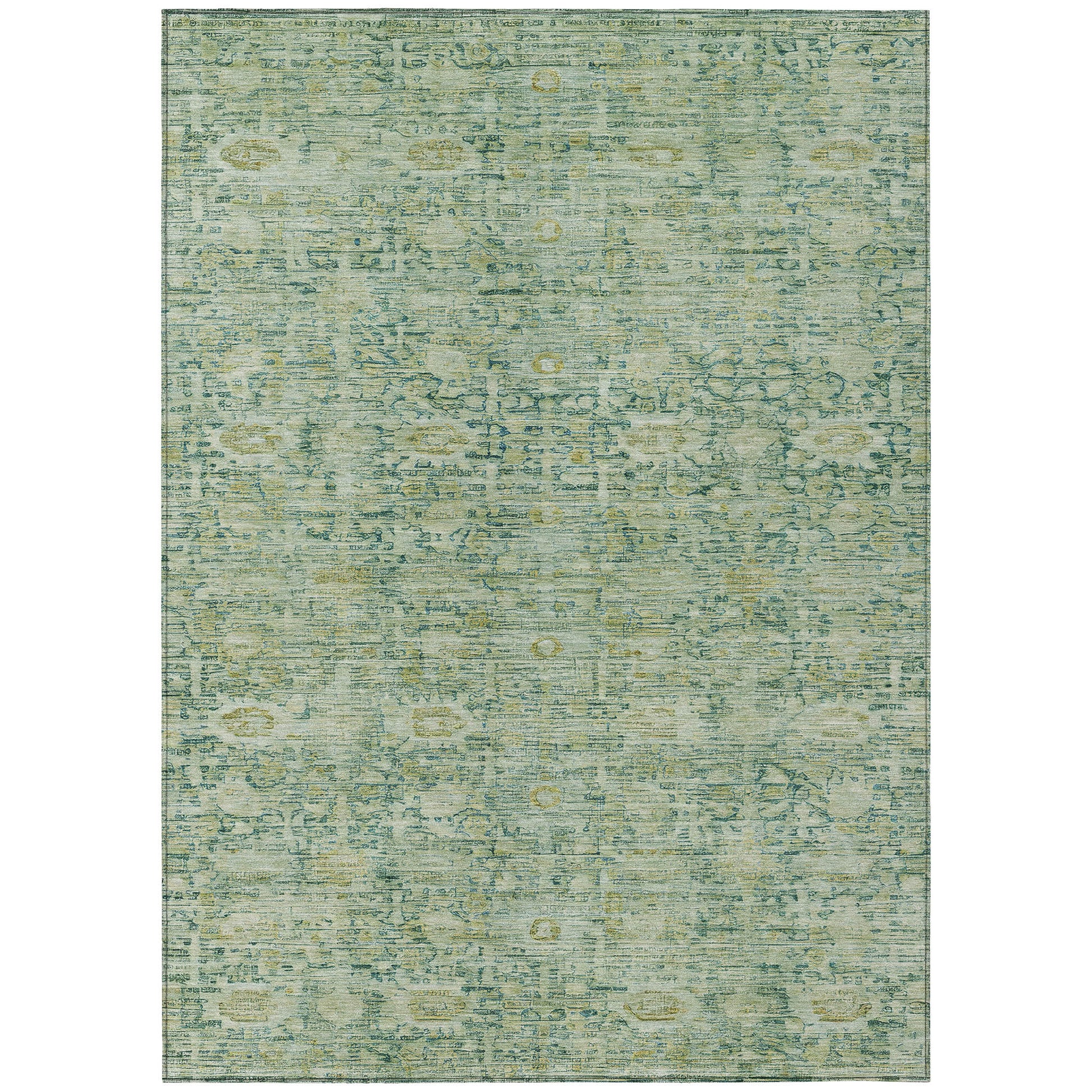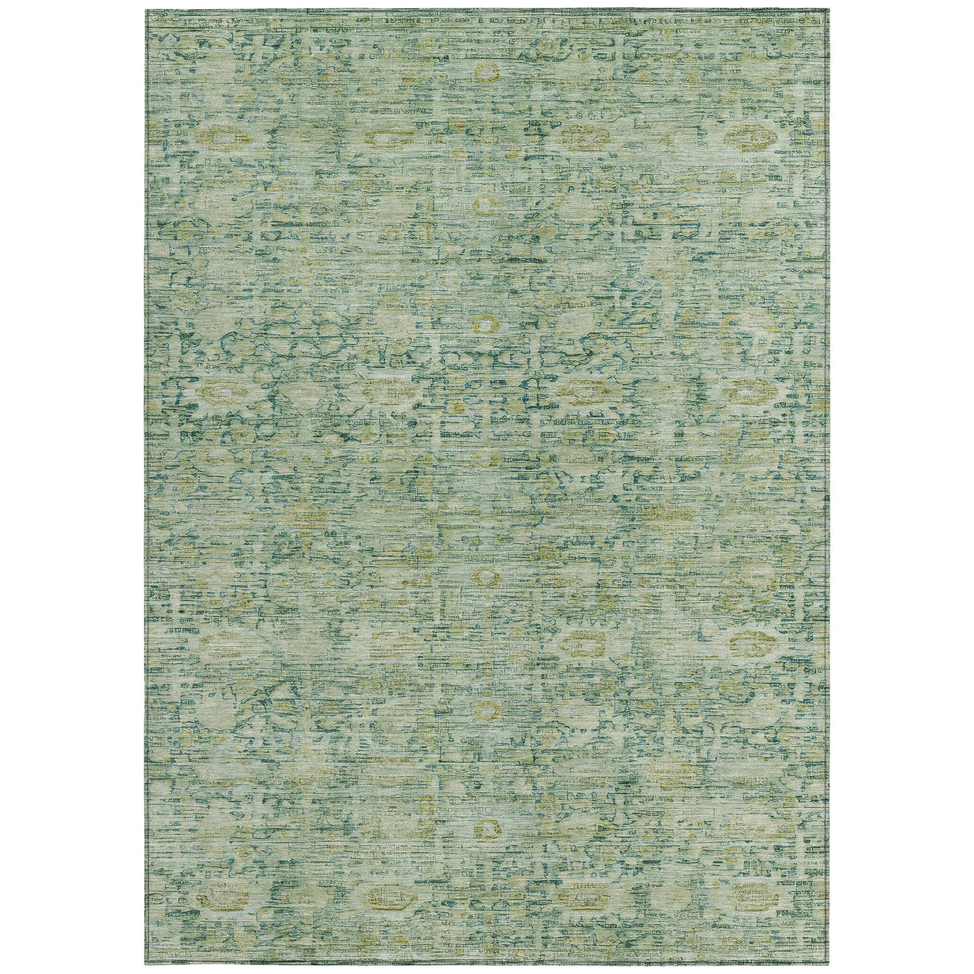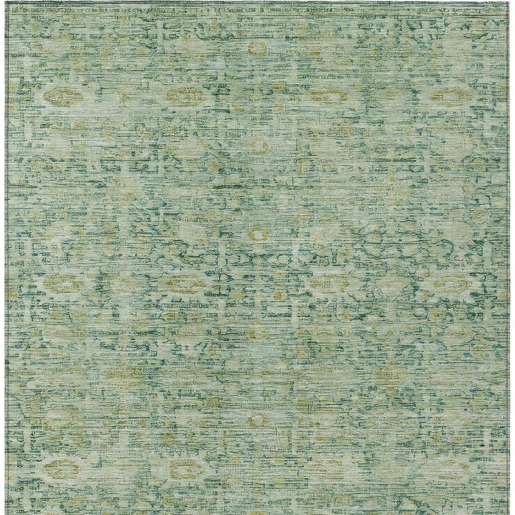 3' X 5' Artichoke Green And Teal Blue Oriental Washable Indoor Outdoor Area Rug