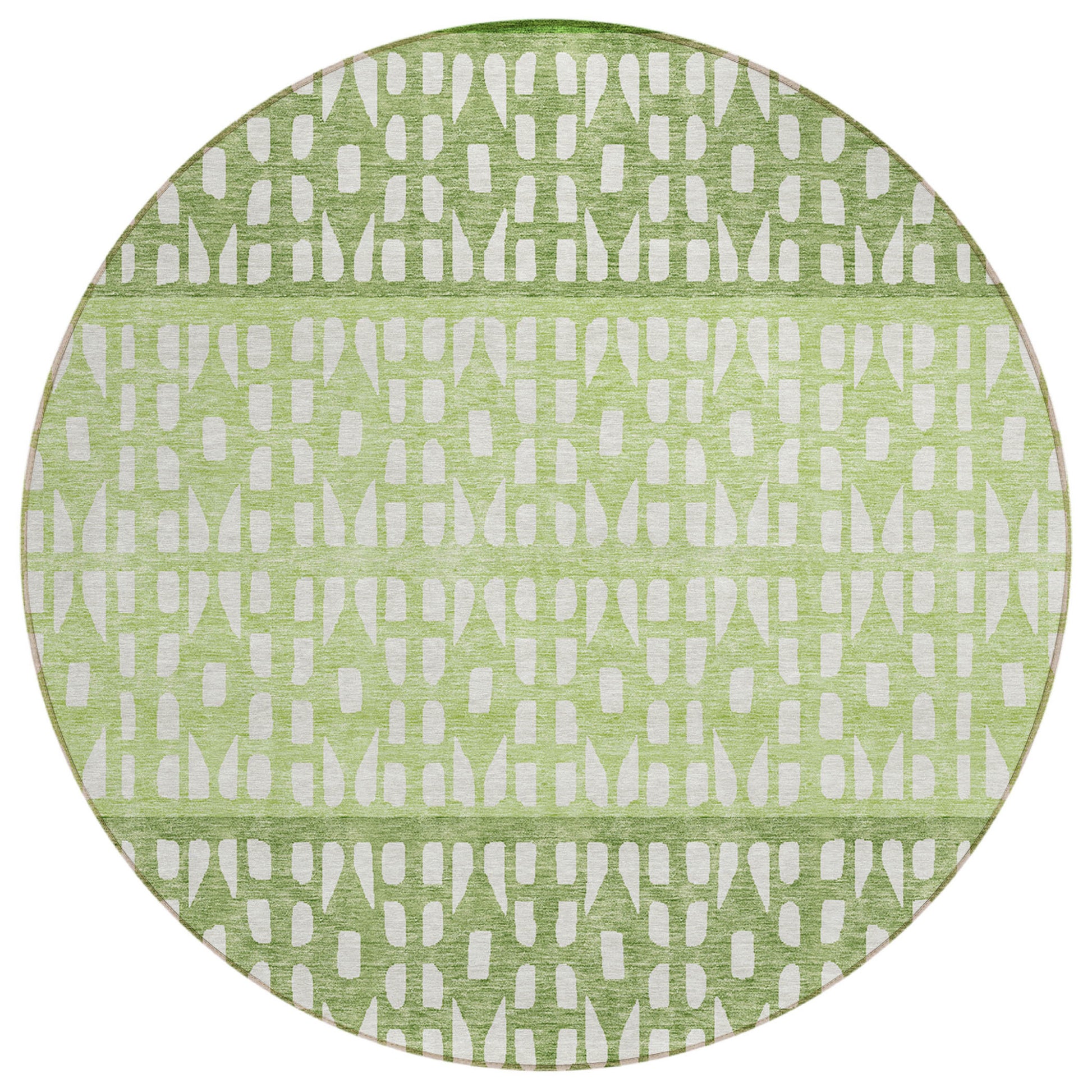 8' Green Sage And Ivory Round Geometric Washable Indoor Outdoor Area Rug