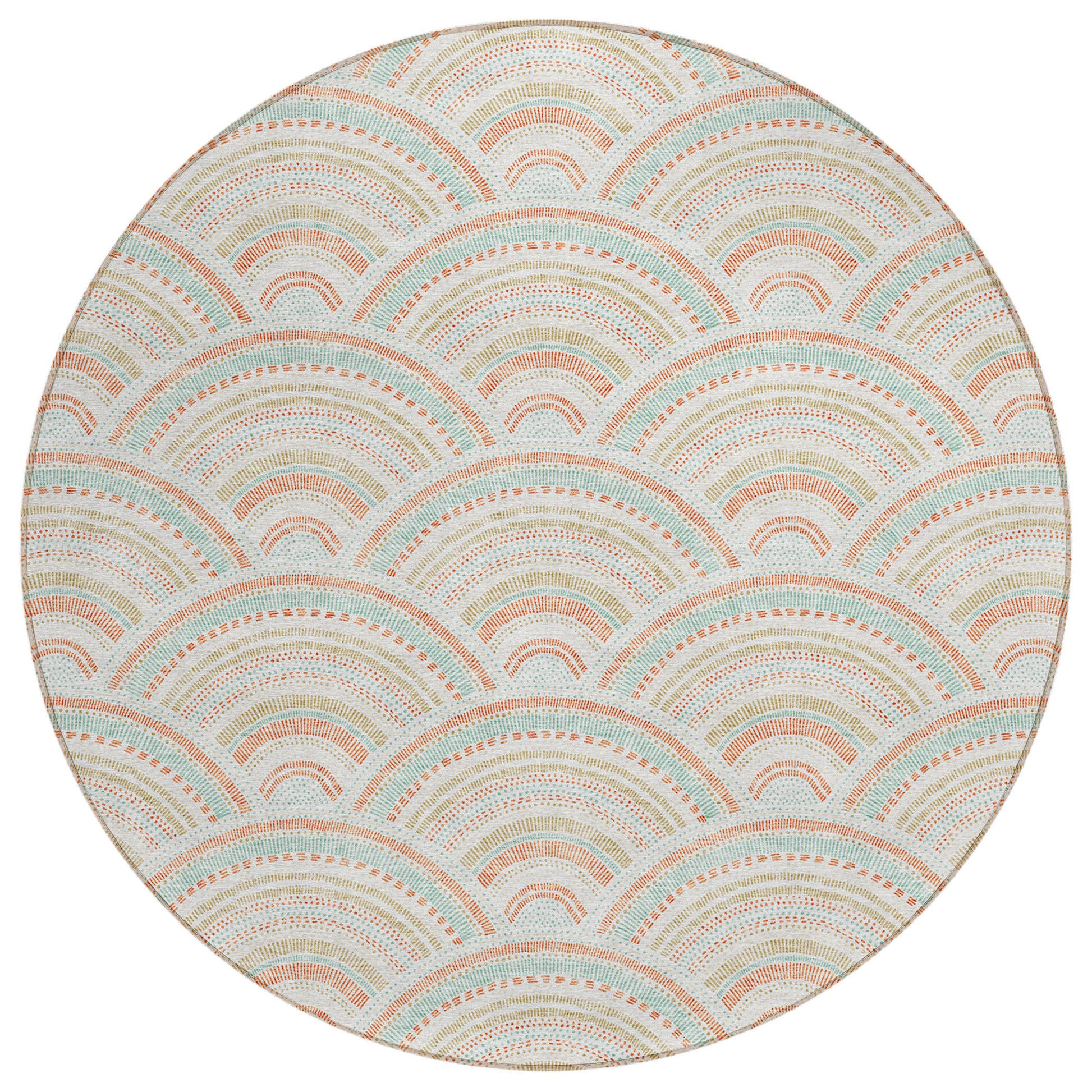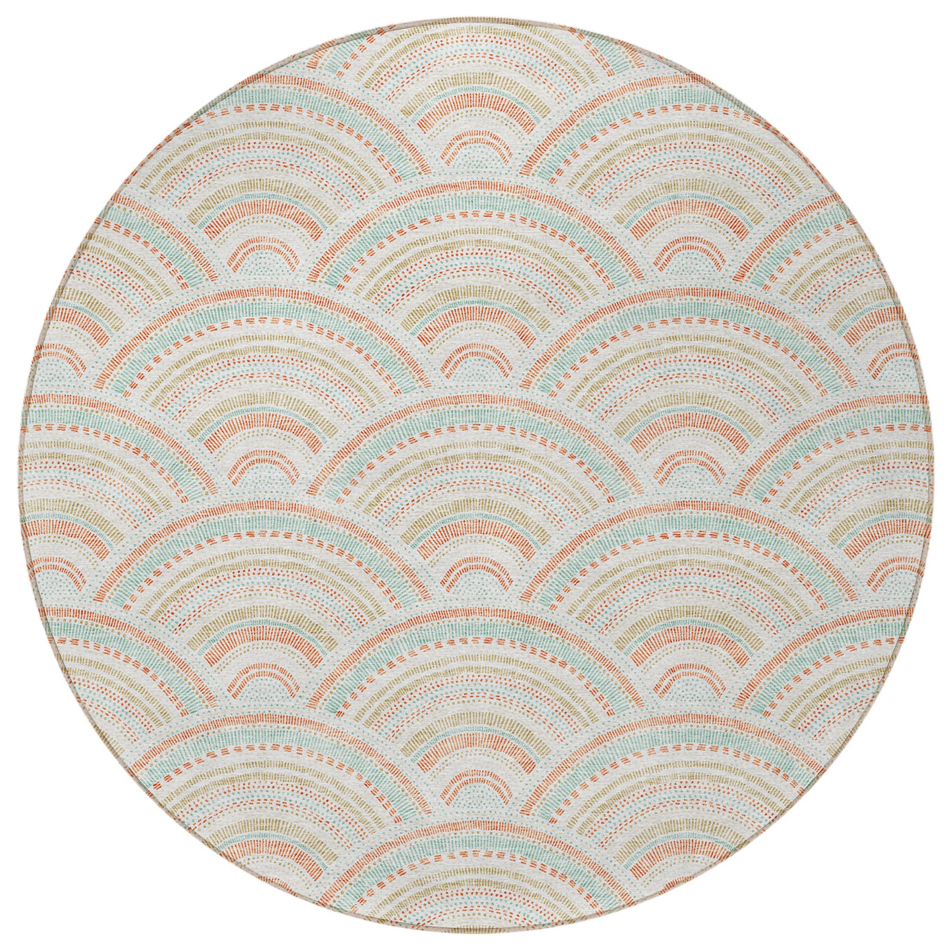 Set an inviting tone in your space with this 8-foot linen orange and ivory round geometric washable indoor outdoor area rug. This geometric round shaped rug features a geometric pattern in linen, orange, and ivory that combines a good looking print with a unique and updated shape. The mix of shape, color, and design gives this rug refreshing visual interest. Ideal for outdoor spaces or high traffic areas with kids and pets, this rug is made from heavy duty polyester that is stain resistant to help repel water, dirt, and stains. Versatile in use, durable, and easy to maintain, this rug is an ideal solution to add a decorative and inviting touch to your indoor or outdoor space. 96-inch h x 96-inch w x 0.19-inch d.