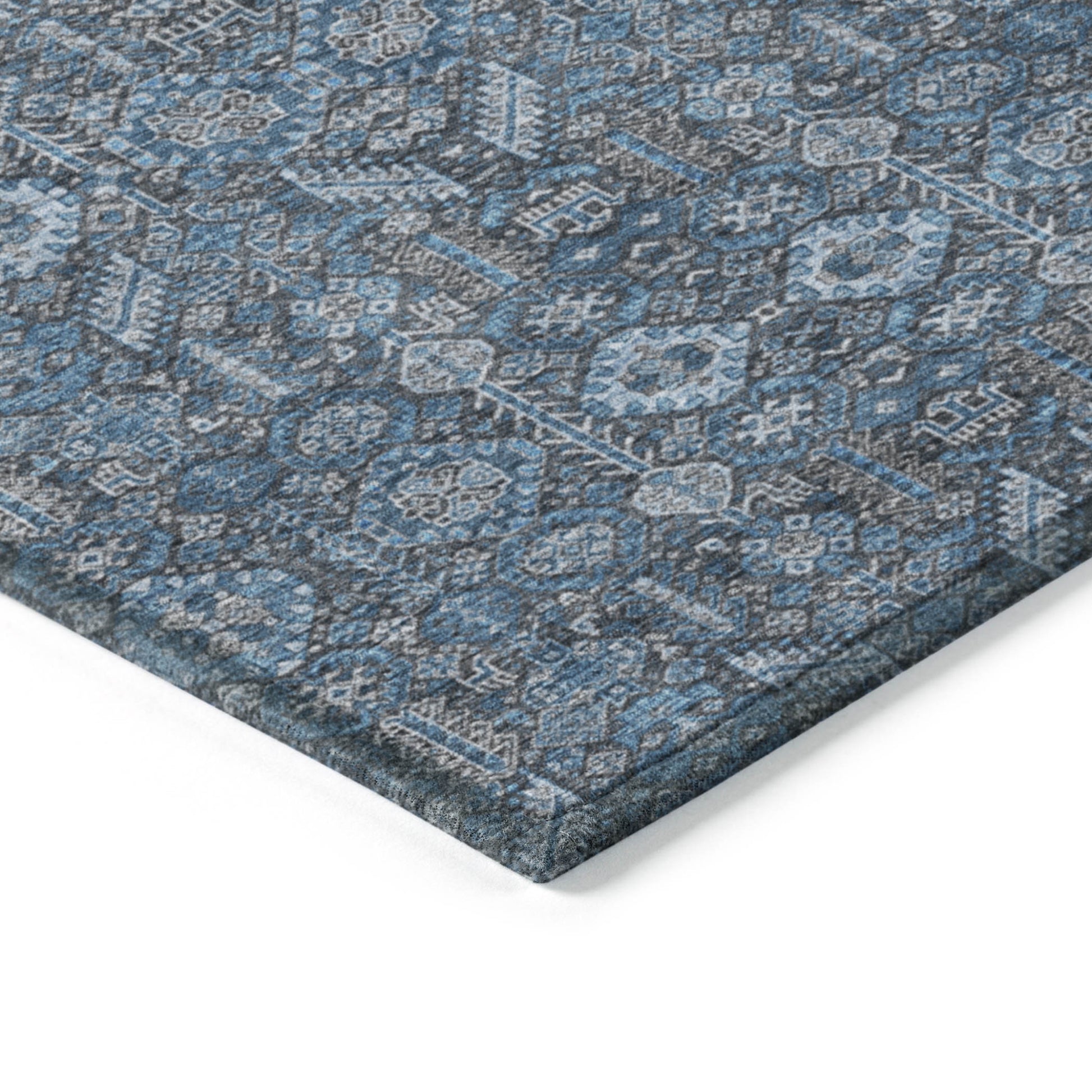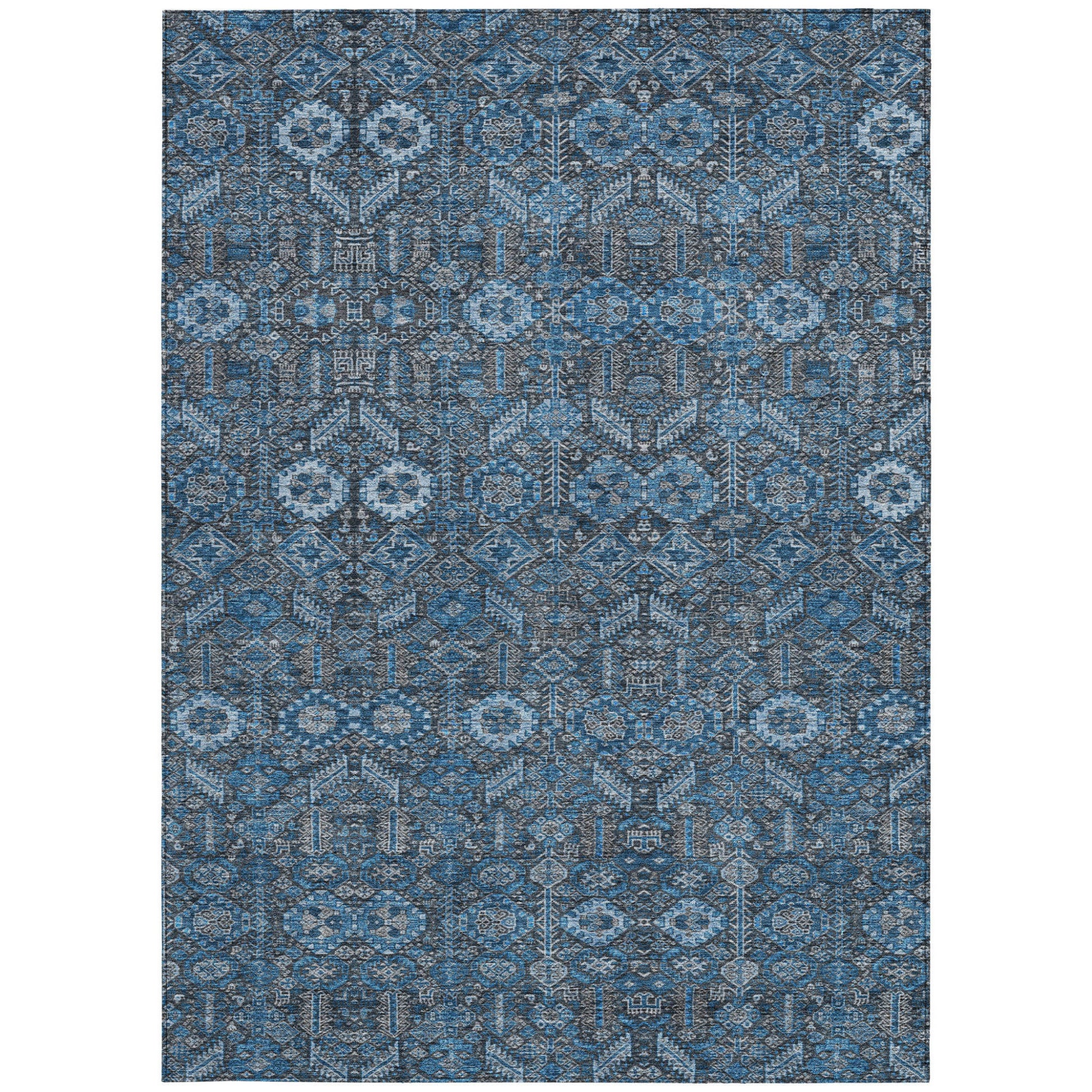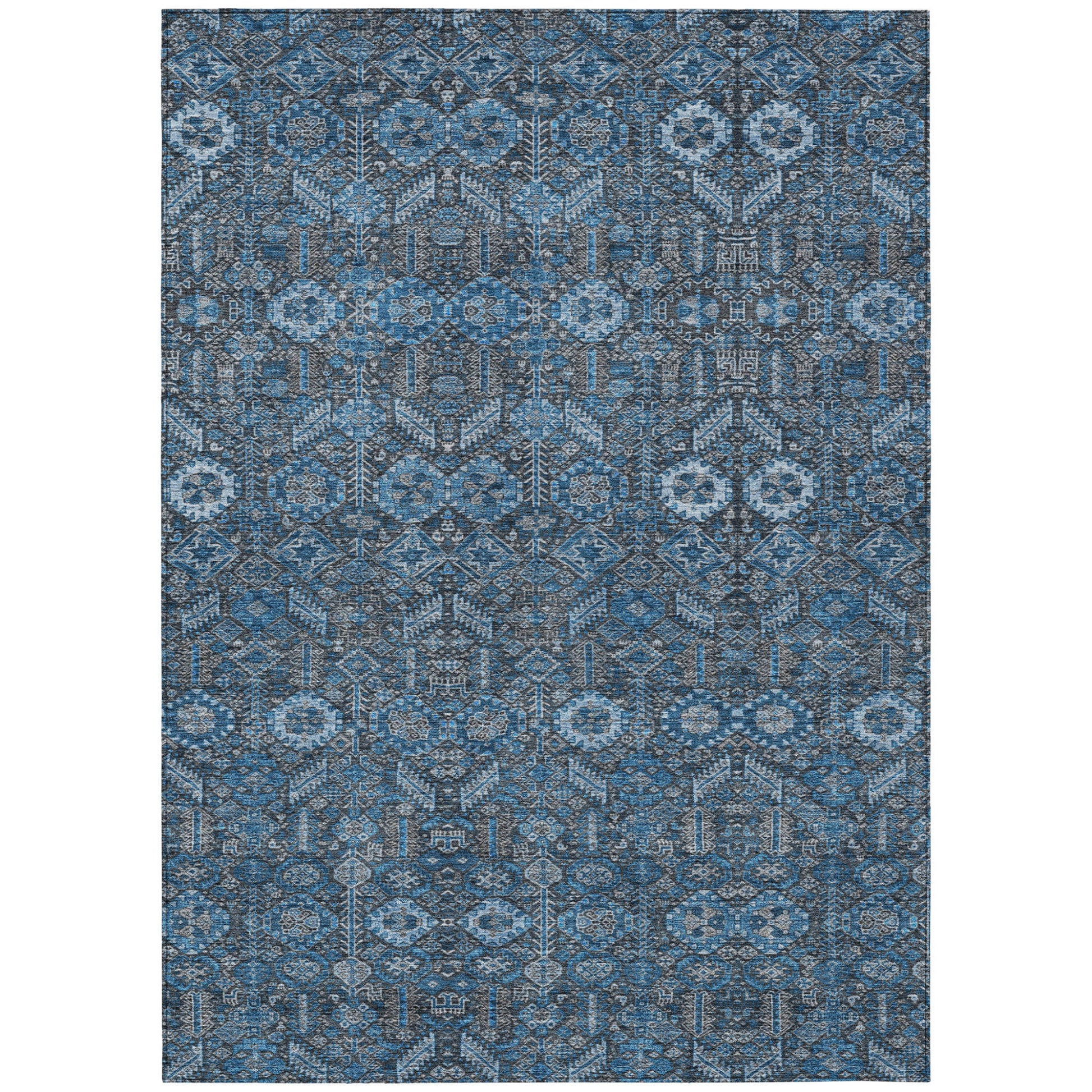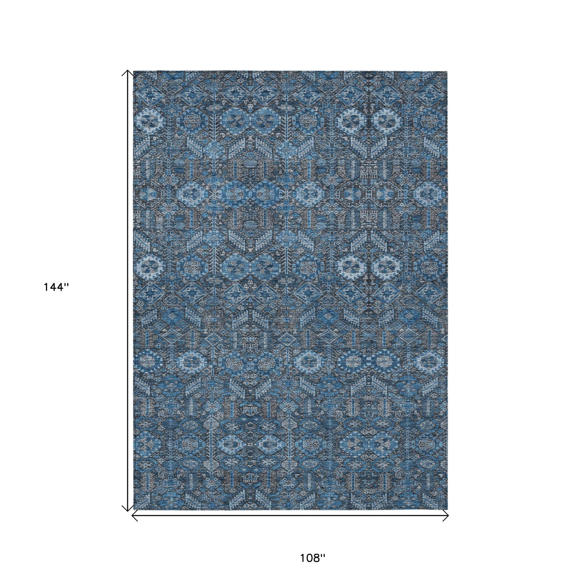 9' X 12' Blue and Black Floral Washable Non Skid Indoor Outdoor Area Rug