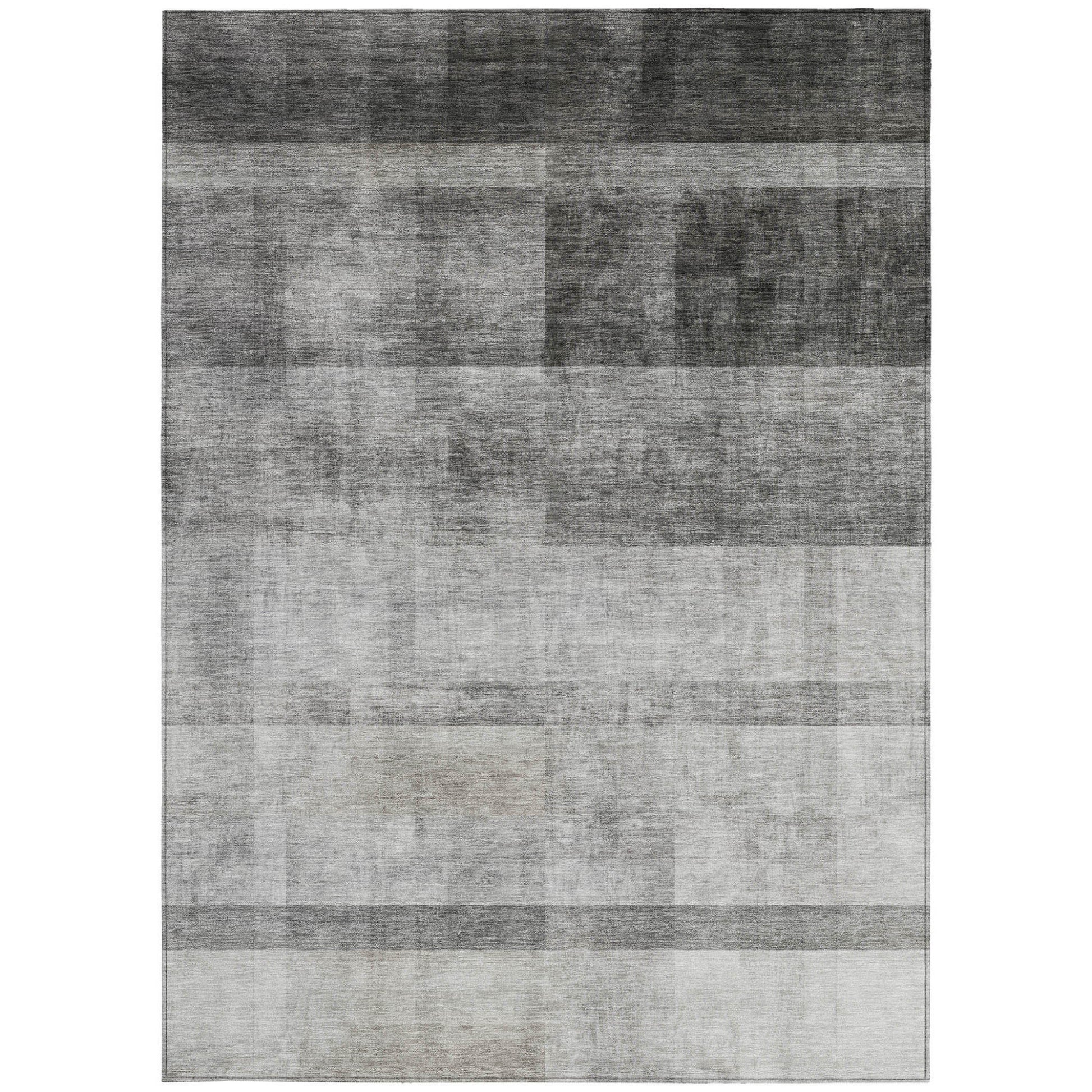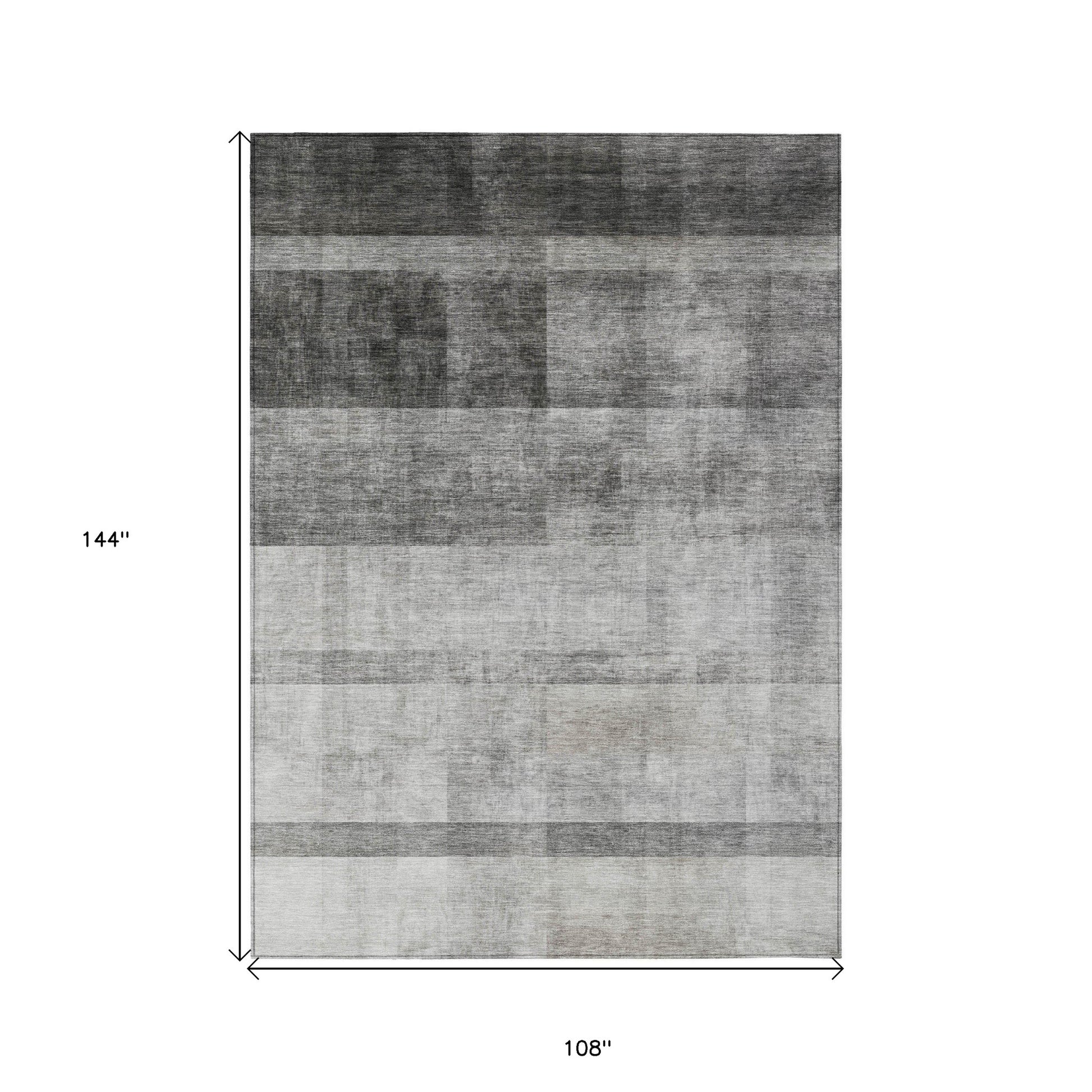 9' X 12' Gray Ombre Washable Non Skid Indoor Outdoor Area Rug